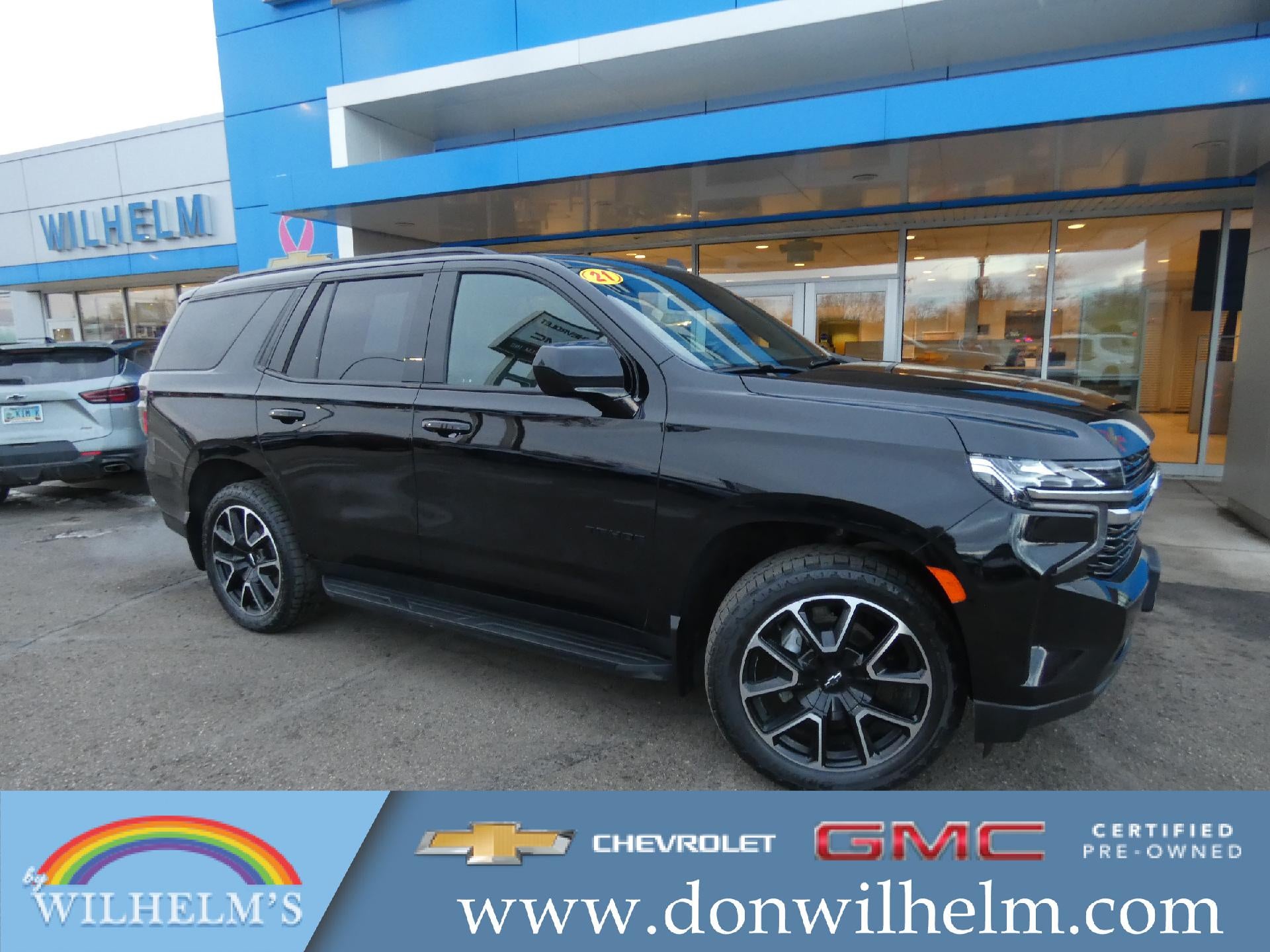 Don Wilhelm Inc is excited to offer this beautiful-looking 2021 Chevrolet Tahoe RST in Black, beautifully equipped with License Plate Front Mounting Package, Preferred Equipment Group 1SP (1st & 2nd Row Color-Keyed Carpeted Floor Mats, 2 USB Data Ports, Auto-Dimming Inside Rear-View Mirror, Bright Front & Rear Door Sill Plates, Color-Keyed Carpeting Floor Covering, Driver & Front Outboard Passenger Airbags, Floor Console w/Storage Area, Hands-Free Rear Power Programmable Liftgate, HD Radio, Infotainment Display, Leather-Wrapped Steering Wheel, LED Daytime Running Lamps, Memory Settings for Driver, Remote Start, SiriusXM Radio w/360L, and Universal Home Remote), Rear Media & Nav Package (Radio: Chevrolet Infotainment 3 Premium System, Rear Seat Media System, and SiriusXM NavTraffic), 4WD, Jet Black/Victory Red Leather, 10-Way Power Driver & Passenger Seat Adjusters, 3.23 Rear Axle Ratio, 3rd row seats: split-bench, 4-Wheel Disc Brakes, 9 Speakers, ABS brakes, Air Conditioning, Alloy wheels, AM/FM radio: SiriusXM with 360L, Apple CarPlay/Android Auto, Auto High-beam Headlights, Auto-dimming Rear-View mirror, Automatic temperature control, Bose 9-Speaker Stereo Audio System Feature, Brake assist, Bumpers: body-color, Compass, Delay-off headlights, Driver door bin, Driver vanity mirror, Dual front impact airbags, Dual front side impact airbags, Dual-Pane Power Panoramic Sunroof, Electronic Stability Control, Emergency communication system: OnStar and Chevrolet connected services capable, Four wheel independent suspension, Front anti-roll bar, Front Bucket Seats, Front Center Armrest, Front dual zone A/C, Front High-Back Reclining Bucket Seats, Front reading lights, Fully automatic headlights, Garage door transmitter, Heated door mirrors, Heated Driver & Front Passenger Seats, Heated front seats, Illuminated entry, Leather steering wheel, Low tire pressure warning, Memory seat, Not Equipped w/Automatic Stop/Start, Not Equipped w/Steering Column Lock, Not Equipped w/Wireless Charging, Occupant sensing airbag, Outside temperature display, Overhead airbag, Overhead console, Panic alarm, Passenger door bin, Passenger vanity mirror, Perforated Leather Seat Trim, Power door mirrors, Power driver seat, Power Liftgate, Power passenger seat, Power steering, Power windows, Premium audio system: Chevrolet Infotainment 3, Premium Smooth Ride Suspension, Radio: Chevrolet Infotainment 3 Plus System, Rain sensing wipers, Rear air conditioning, Rear anti-roll bar, Rear reading lights, Rear seat center armrest, Rear window defroster, Rear window wiper, Remote keyless entry, Roof rack: rails only, Security system, Set of 4 Wheel Locks (LPO), Speed control, Speed-sensing steering, Split folding rear seat, Spoiler, Steering wheel mounted audio controls, Tachometer, Telescoping steering wheel, Tilt steering wheel, Traction control, Trip computer, Variably intermittent wipers, Voltmeter, and Wheels: 22" x 9" Bright Machined! 4WD, Jet Black/Victory Red Leather. CARFAX One-Owner. Clean CARFAX. 4WD 10-Speed Automatic with Overdrive EcoTec3 5.3L V8