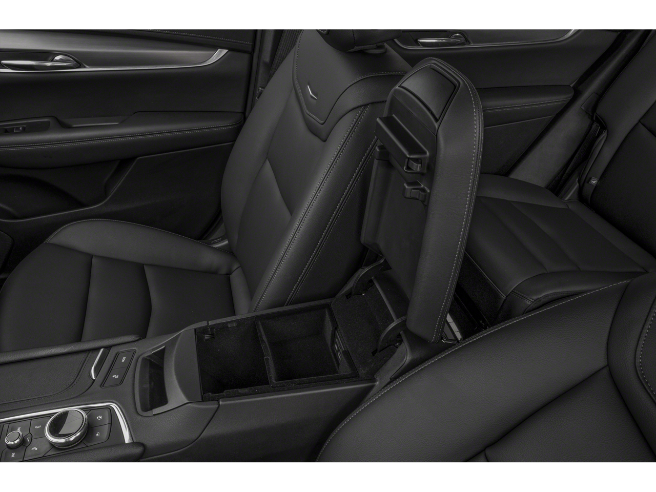 - Opens or closes when the system senses the key fob and the driver extends their foot under the left-hand side of the rear bumper over an image of the Cadillac Crest projected under the vehicle